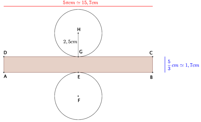 rC = 2,5 cm, donc la largeur du rectangle est égale à : 2 × π ×