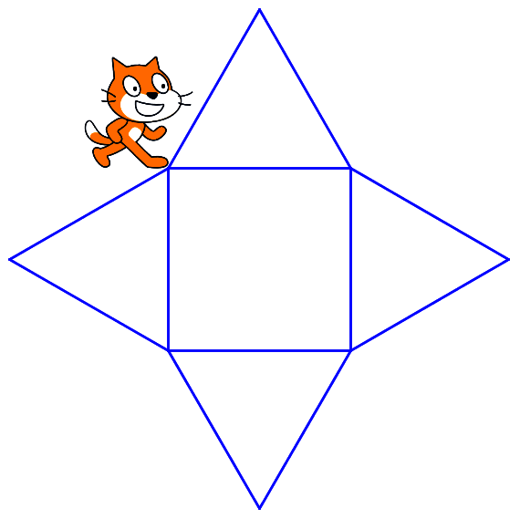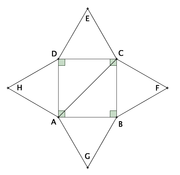 On nomme les sommets du carré : A, B, C et D et on nomme les sommets (qui ne sont pas des sommets du carré) des triangles E, F, G et H.