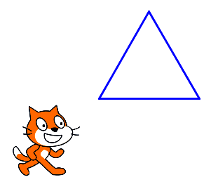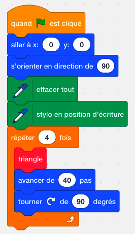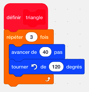 Le triangle comporte trois côtés, il faudra donc tracer trois segments (ici de longueur 40 pas).